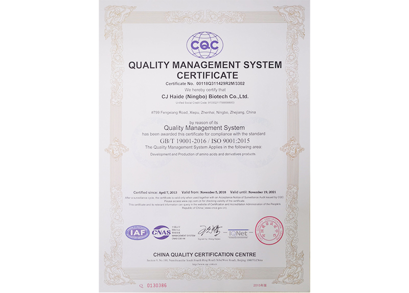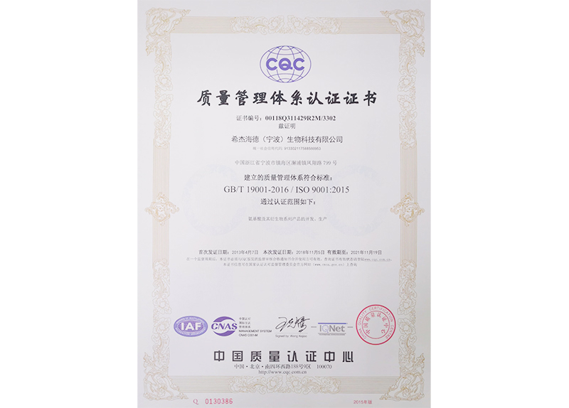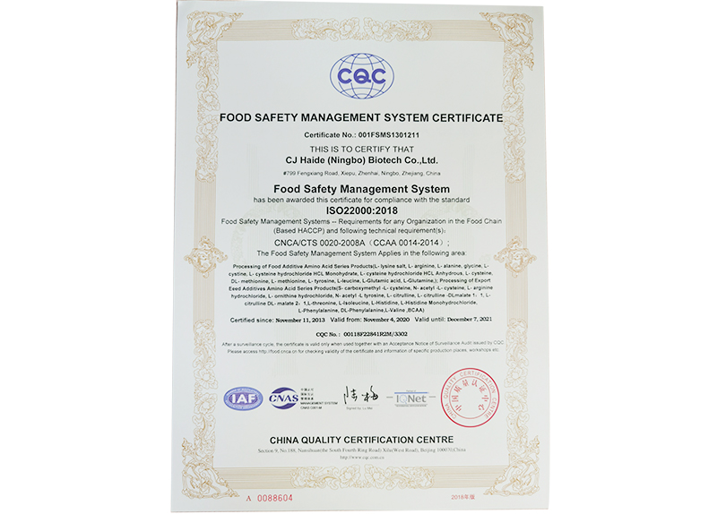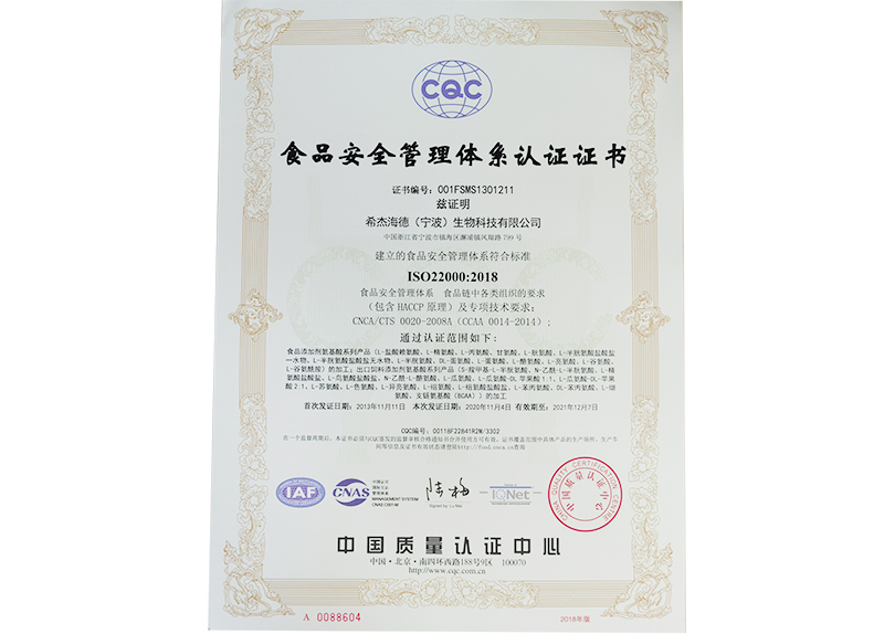 這些許可和認(rèn)證,使海德公司的氨基酸產(chǎn)品能夠在國際國內(nèi)國際食品等專業(yè)市場合法銷售, 也是海德公司對客戶和用戶的承諾。